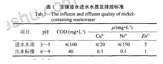 各企業(yè)生產的廢水統(tǒng)一排放收集到廢水處理設備廠,按照不同的處理方法進行分股分類,其中含鎳廢水的水質情況及出水標準如下圖所示。