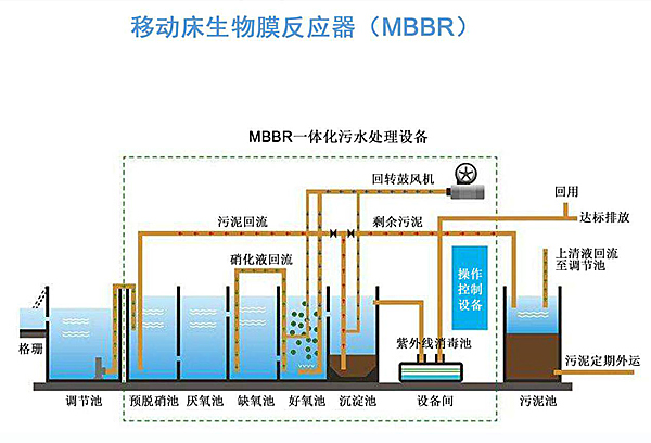 3、MBBR工藝中可不需要污泥回流設(shè)備,不需反沖洗設(shè)備,減少了設(shè)備投資,操作簡(jiǎn)便,降低了污水的運(yùn)行成本;