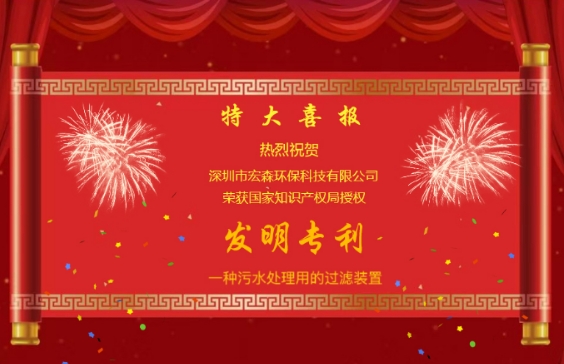 2024年,注定是一個充滿喜悅和美好的一年!在這個美好的開始,時鐘剛剛敲響新一年的鐘聲,喜訊就如春風般傳遍宏森每一個角落。我們再次迎來了又一個令人振奮的好消息:榮獲國家知識產權局授權的發明專利——種污水處理用的過濾裝置。這是對我們公司持續創新和卓越成就的高度認可,也是全體員工辛勤努力的結果。